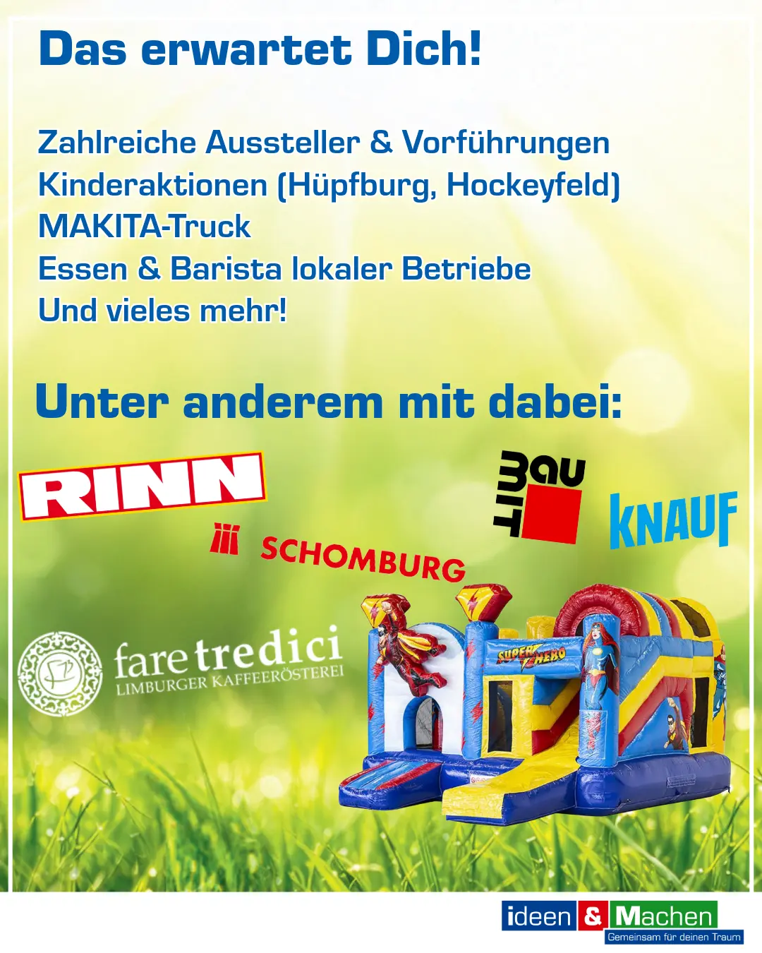 Freuen Sie sich auf zahlreiche Aussteller und Produktvorführungen, bei denen Sie aktuelle Lösungen und Neuheiten rund ums Bauen, Renovieren und Gestalten hautnah erleben können. Nutzen Sie die Gelegenheit, sich direkt vor Ort zu informieren und mit Experten ins Gespräch zu kommen.